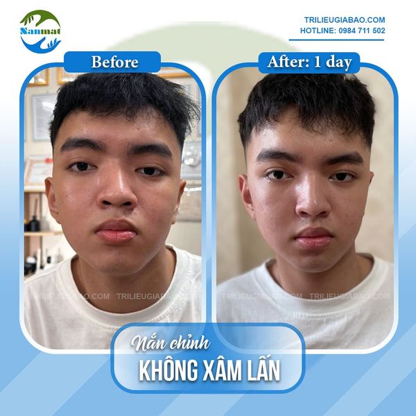 Ảnh chụp sự thay đổi của bạn Dương sau 01 buổi nắn chỉnh mặt lệch