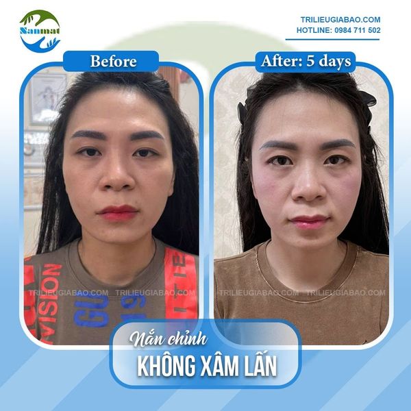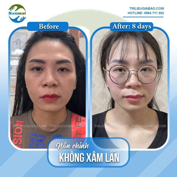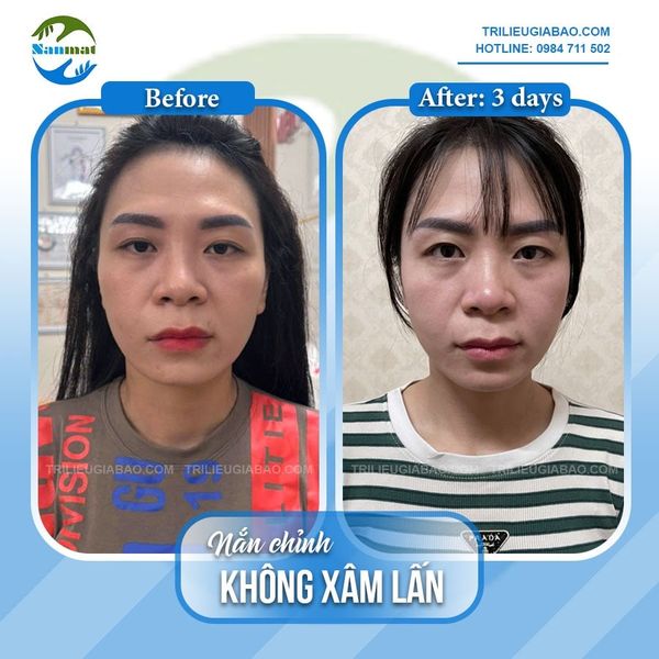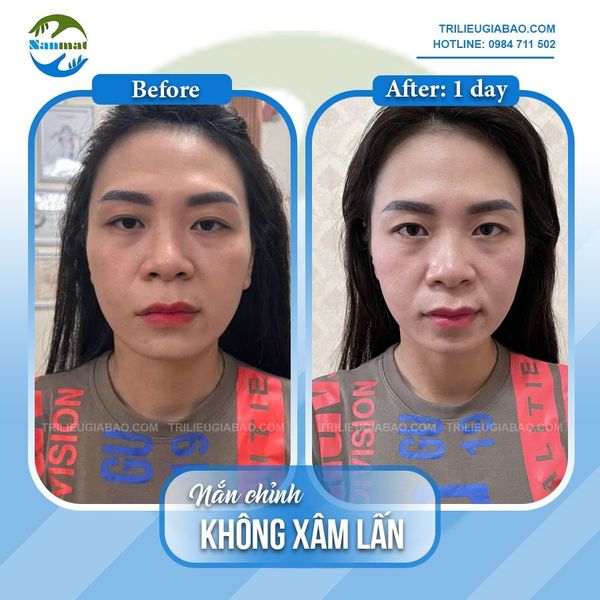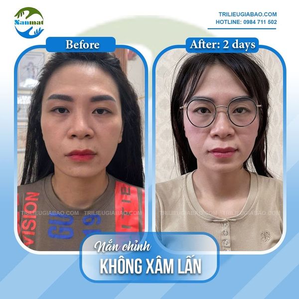 Ảnh chụp sự thay đổi của Ms.Hằng sau 01 buổi nắn chỉnh mặt lệch