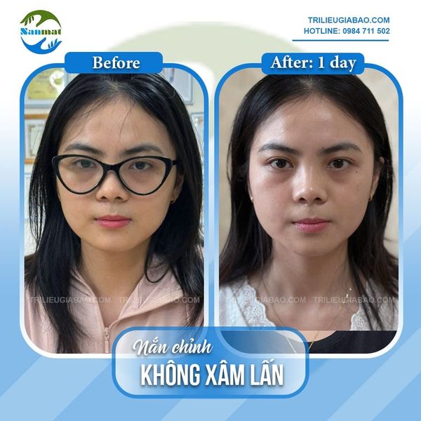 Ảnh chụp sự thay đổi của Ms.Giang sau 01 buổi nắn chỉnh mặt lệch