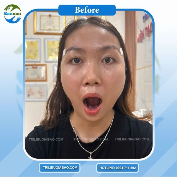 Ms.Loan (sn 2000) gặp tình trạng lệch mặt rất nặng: Hàm lệch, mắt lệch, miệng lệch, hàm lệch, mũi lệch, trục mặt lệch. Qua tìm hiểu trên mạng qua kênh Tiktok, bạn đã quyết định đến Trị liệu Gia Bảo để nắn chỉnh.