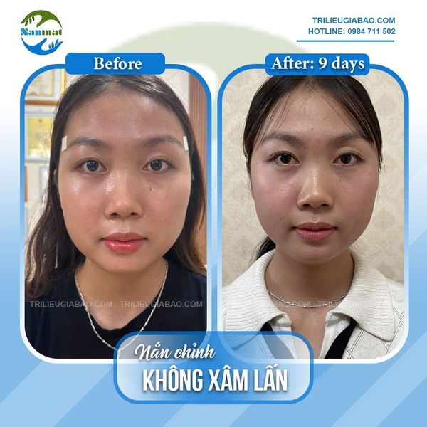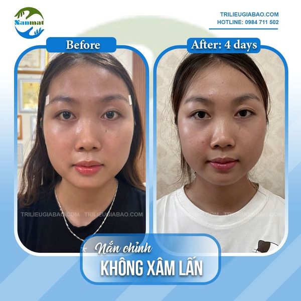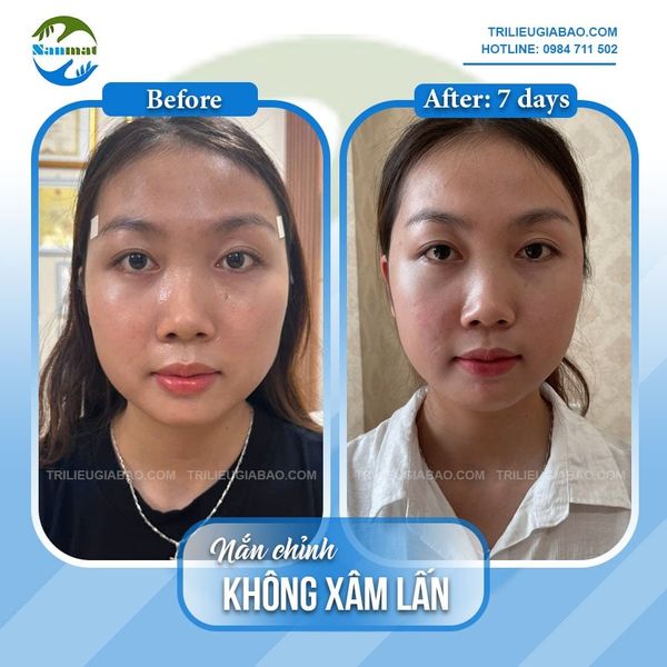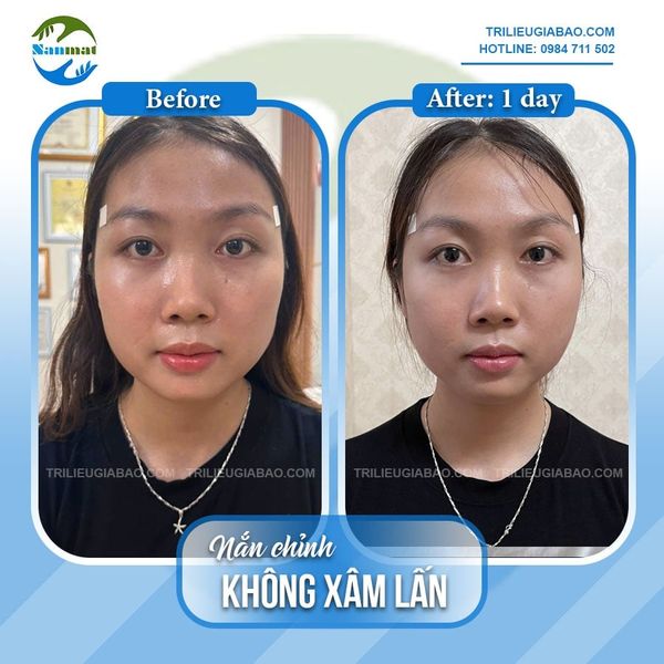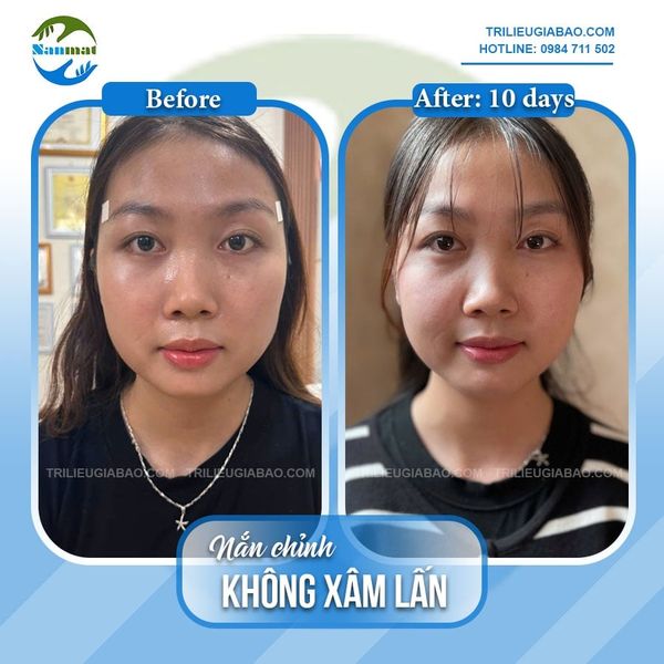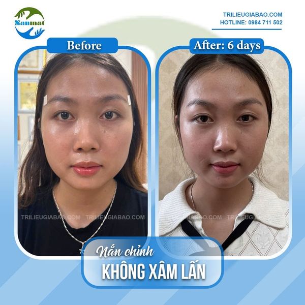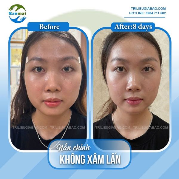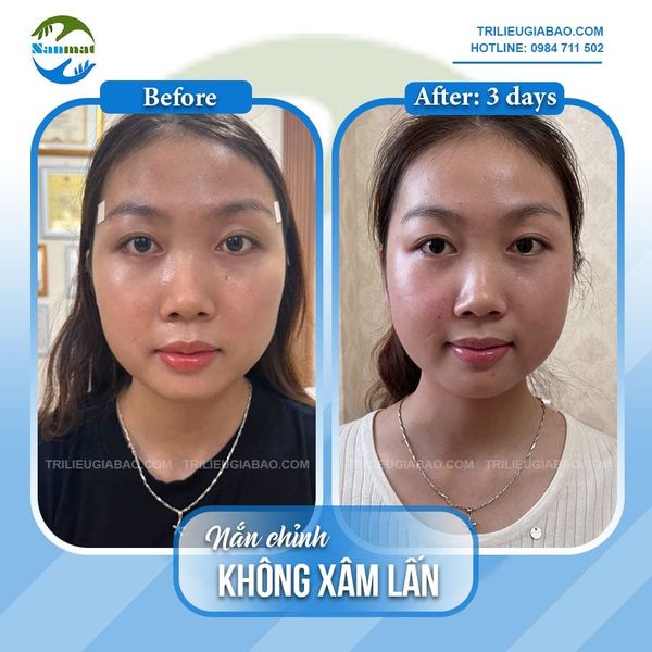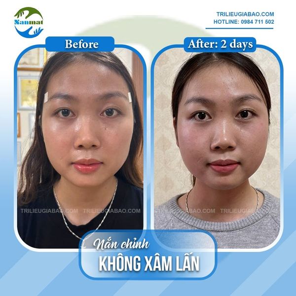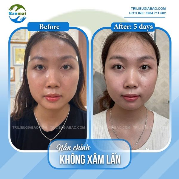 Ảnh chụp sự thay đổi của Ms.Loan sau 01 buổi nắn chỉnh mặt lệch