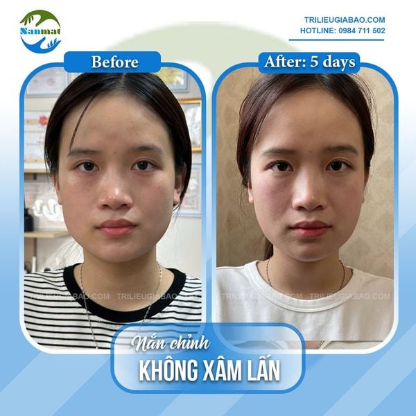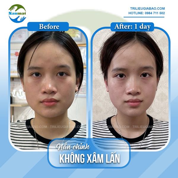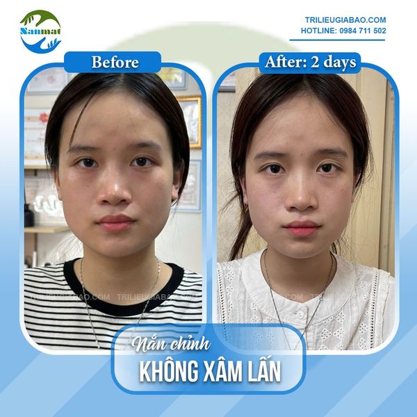 Ảnh chụp sự thay đổi của Ms.Phương sau 01 buổi nắn chỉnh mặt lệch